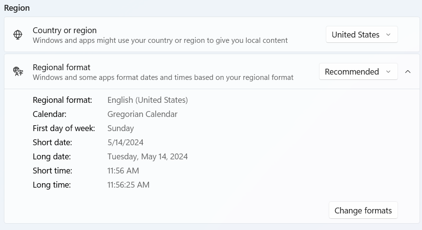 3. United States Date/Time Format Under Windows Settings, the Regional Format must be set to English (United States) for whatever domain account is used for the installer: