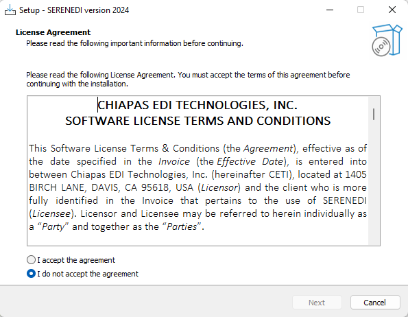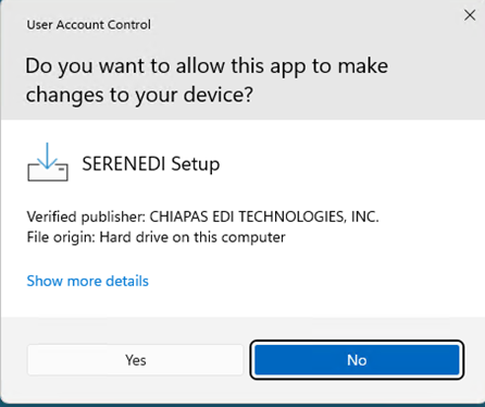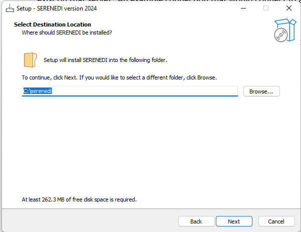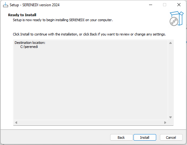 1. The SERENEDI Windows installer is a single MSI file, around 120MB in size, looking like this: