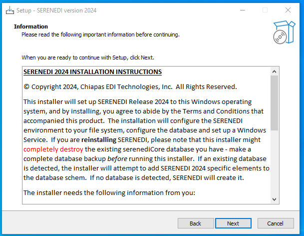 1. SQL Server SERENEDI requires a running SQL Server instance; the examples included in these instructions assume that it was installed: